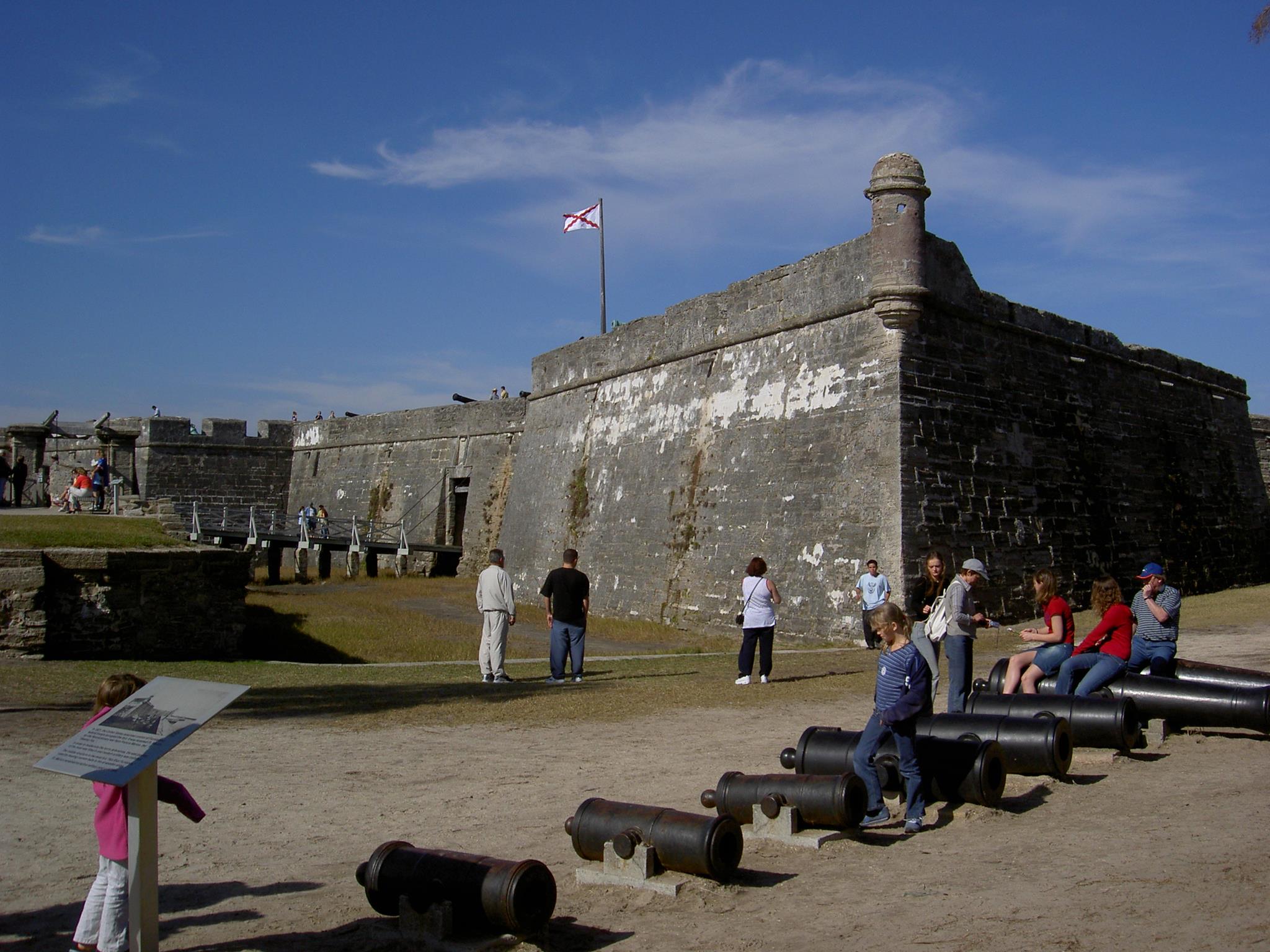 Der spanische Entdecker Juan Ponce de Léon war bereits 1513 in der Nähe der Mündung des St. Johns River an Land gegangen. Aber erst 1565 wurde von dem Abenteurer und Lebemann Pedro Menéndez de Avilés begonnen, die Gegend zu besiedeln und da er am Tag des Heiligen St. Augustin dort ankam, nannte er diese Stelle St. Augustine. So darf sich St. Augustine damit rühmen, die älteste dauerhafte europäische Siedlung in Nordamerika zu sein. Die Gebäude stammen aus der spanischen Kolonialzeit des 17. und 18. Jh. Das Castillo de San Marcos, die älteste Steinfestung der USA aus dem späten 17. Jh., hat 5 m dicke Wände und einen 13 m breiten Festungsgraben (Eintritt 6 USD). Das Fort war unbezwingbar, es wurde niemals eingenommen. Das denkmalgeschützte Festungsbauwerk war einst wichtiger Stützpunkt der Spanier zur Sicherung der Schifffahrtsroute von Havanna nach Spanien. Über zwei Zugbrücken erreicht man den Haupteingang, der in einen Innenhof mündet. Eine Treppe führt hinauf auf das Kanonendeck, das einst mit mehr als 60 Kanonen bestückt war und einen schönen Blick auf die Altstadt bietet.